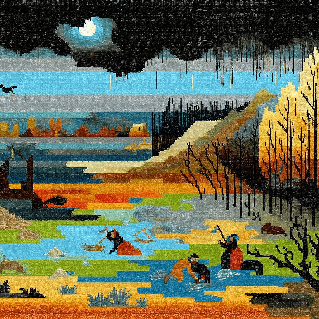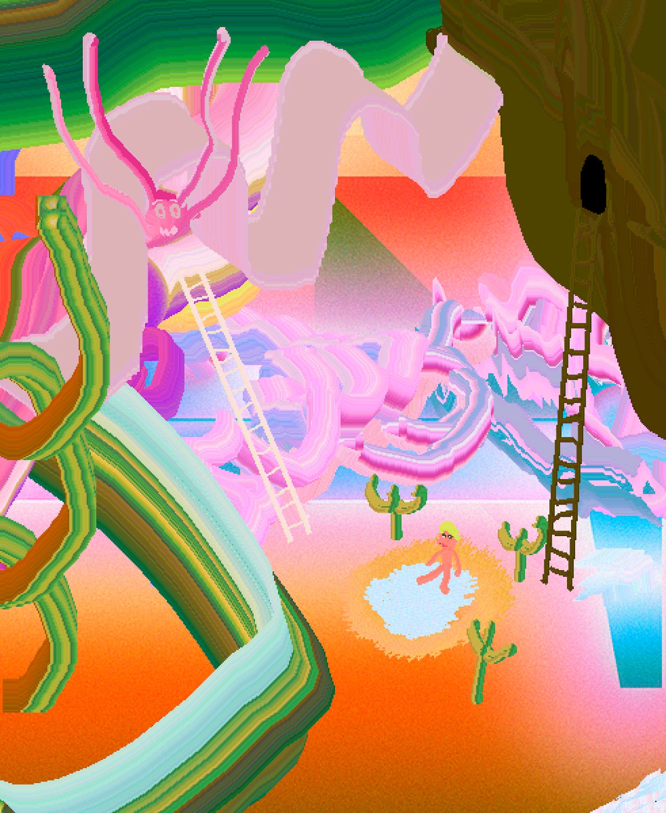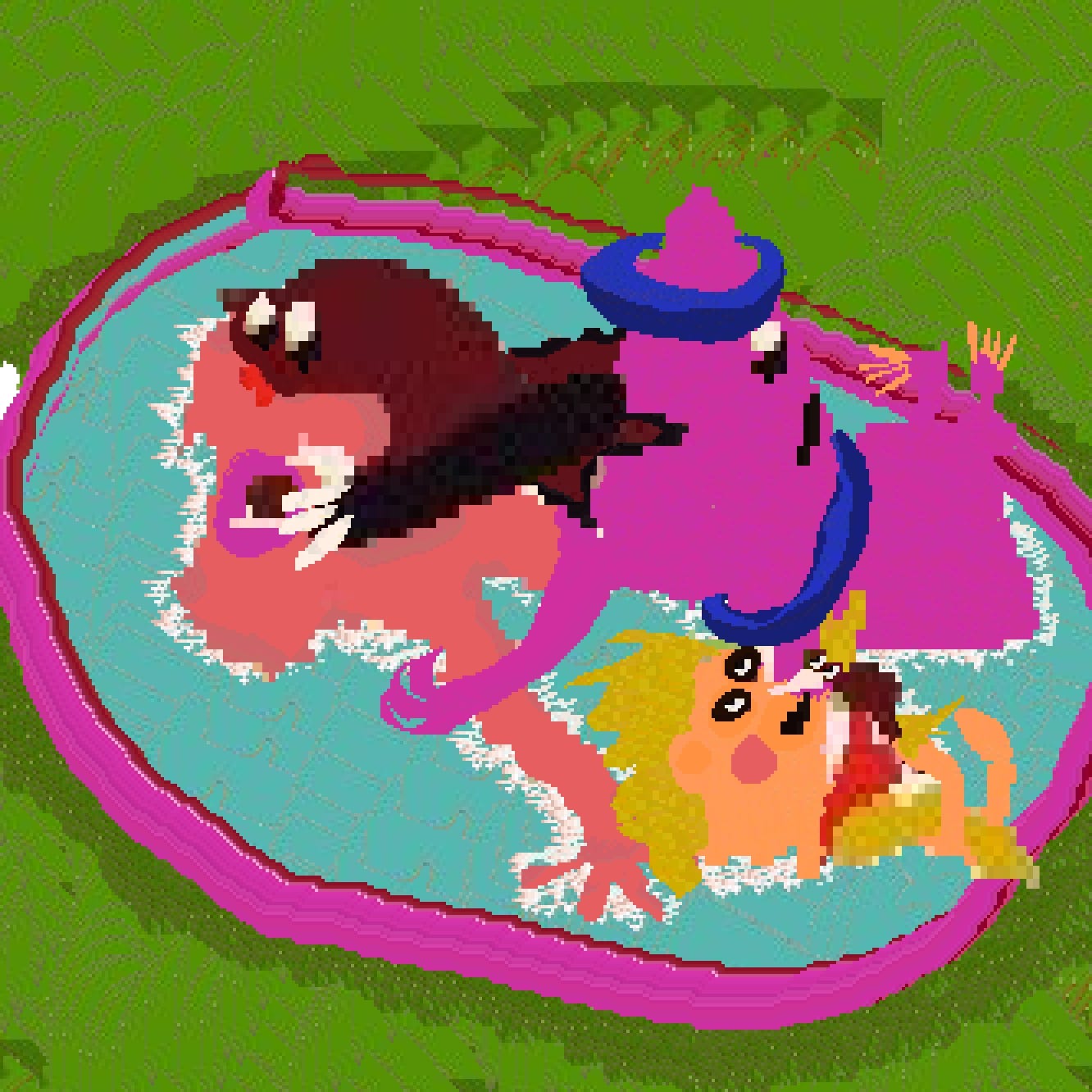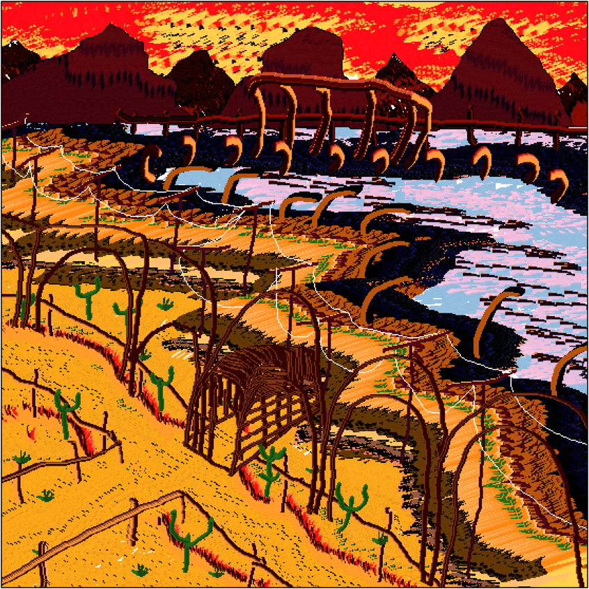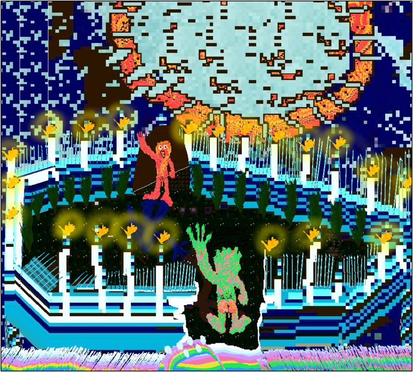 kutukola: The landscape paintings I create are the result of my own adaptation of the random, irregularly scribbled patterns that I had the most fun making, which were created thanks to Aseprite. Sometimes I like to make drawings with stories, and these drawings generally consist of a process where I try to turn situations into jokes about how we, as humans, try to keep our complexes more secret.